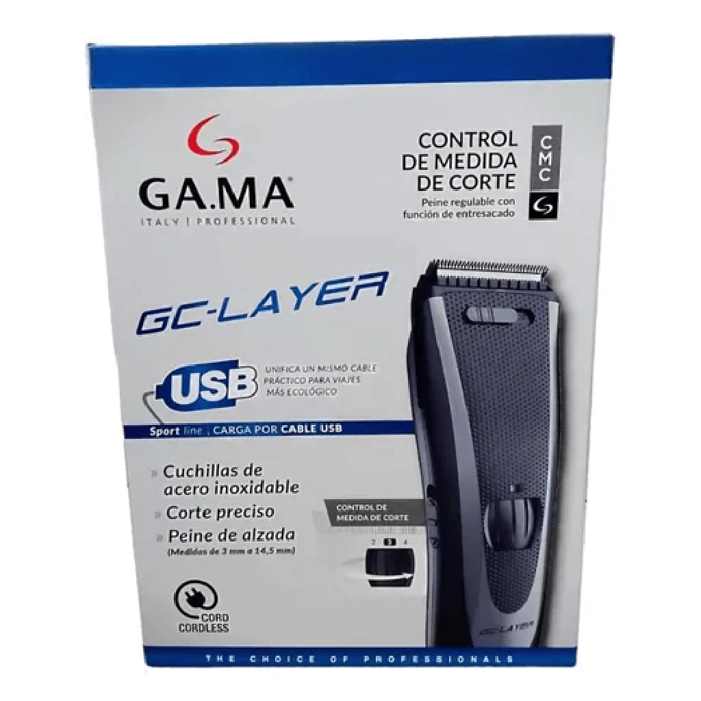 La cortadora GAMA GC LAYER cumple con funciones Cord-Cordless, su batería es recargable y sus cuchillas son de acero inoxidable.